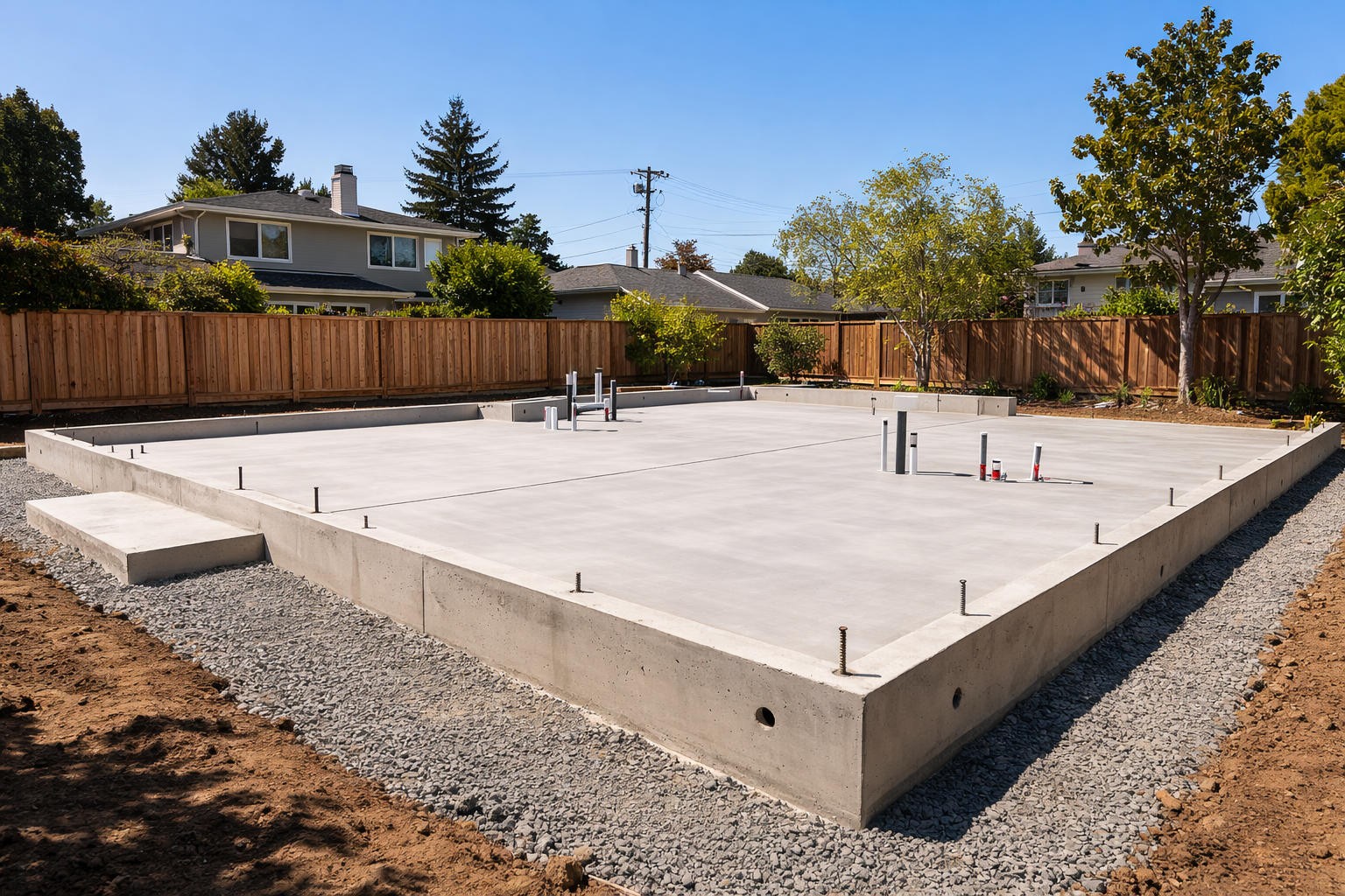Our concrete slab foundation work includes proper soil compaction, moisture barriers, correct rebar placement, and coordination with structural engineers.