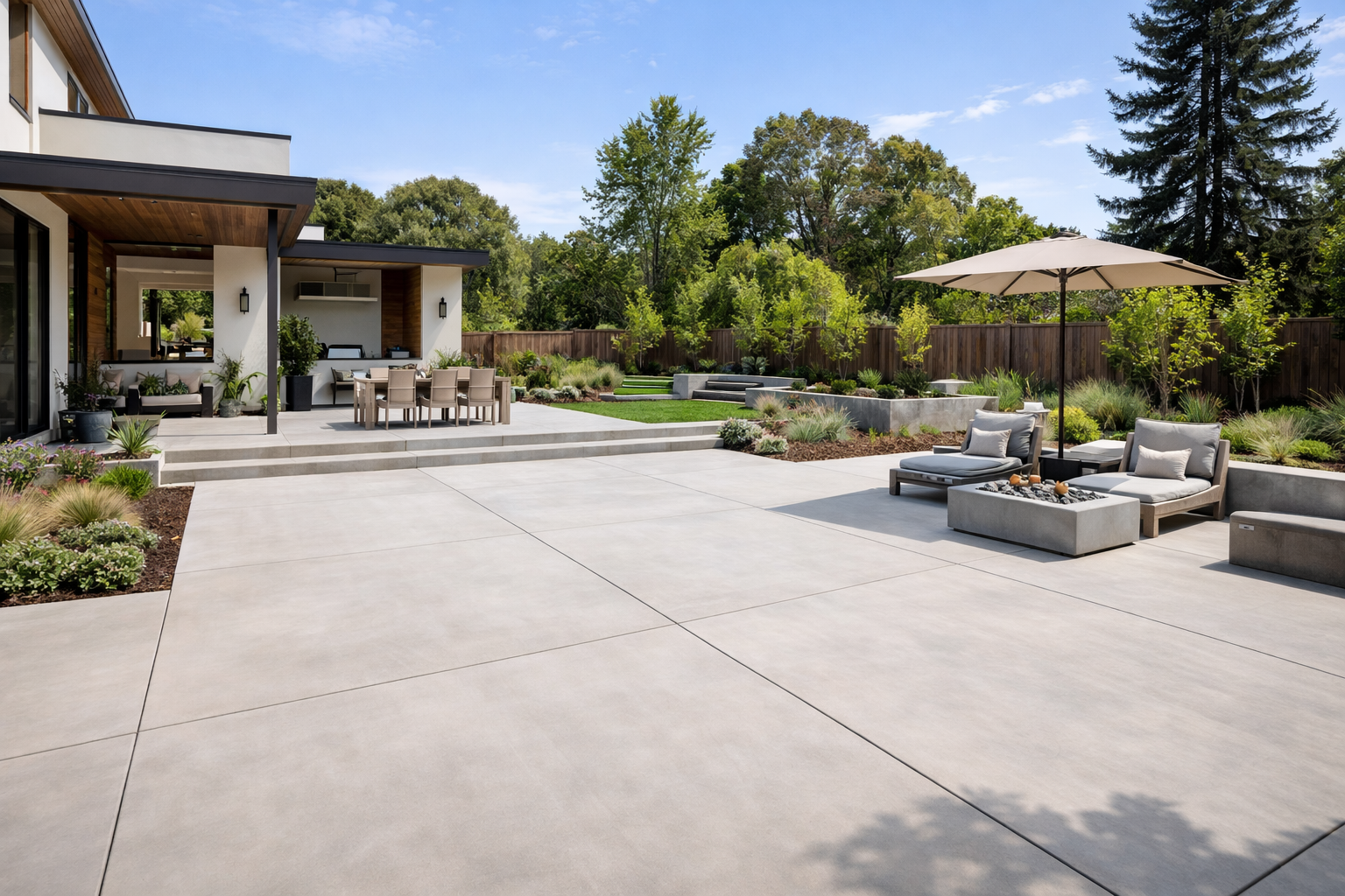 A well-designed concrete patio creates the kind of entertaining space that positions you as the host everyone wants an invitation from. Our concrete patio contractors create custom outdoor spaces that make people stop mid-conversation and ask "who did this for you?"